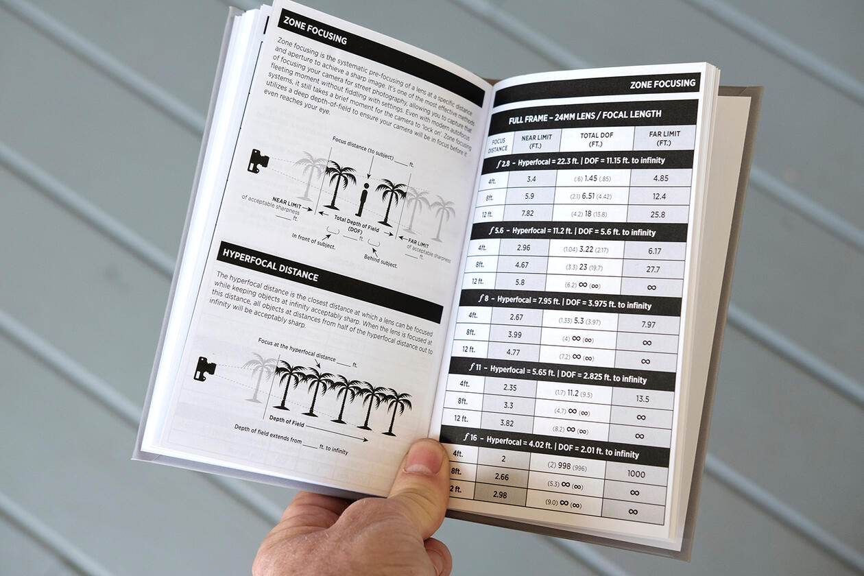 FILM | DIGITAL + ANALOGThe Photo Memo is for people who don’t or haven’t picked up a camera as much as they’d like. It was designed as an analog aid to throw in your bag or back pocket to help build your photography skills and passion. With a dozen project spreads, thirty pages of FUK (Frequently Used Knowledge), and a bunch of dot grid spaces for ideas, you’ll be well equipped to hit the streets.With The Photo Memo you’ll be able to keep track of all the things you think you’ll remember later, like settings, locations, new ideas, etc. Then you’ve just got one place to look when you need to recall something. The FUK pages will keep you from searching around the web for answers and in the moment.KEY FEATURES:Fits easily in your pocket or camera slingHard cover keeps it protected and gives it a firm back for writingFUK (Frequently Used Knowledge) pages explain settings and prod creativityDot grid pages are perfect for sketching out compositions or writing ideas for another dayQuick reference guides for sizes, weights, volume and moreZONE FOCUSING GUIDE FOR STREET SHOOTERSThe zone focusing guide gives you a breakdown of Distances, Hyperfocal Length, Depth of Field, for common lenses and apertures.